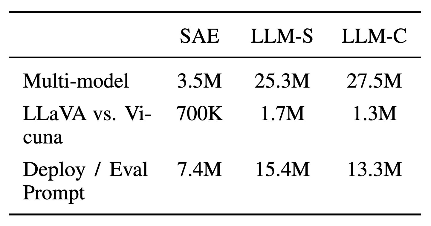 We compare the hypotheses generated by SAEs with those found from LLM baselines, finding that SAEs discover bigger differences at a 2-8x lower token cost. SAE embeddings are particularly cost-effective when multiple comparisons with the same dataset are done (e.g. across model families).